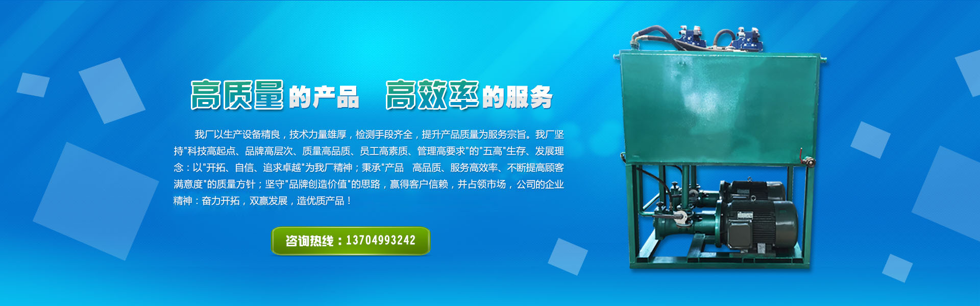 我廠堅持科技高起點、品牌高層次、質量高品質、員工高素質、管理高要求的"五高"生存、發(fā)展理念,以"開拓、自信、追求卓越"為我廠精神。